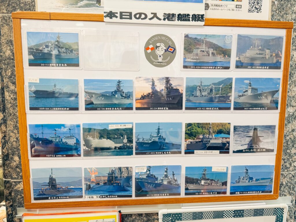 券売所の横には、今日停泊していて見ることができる艦船の一覧が。