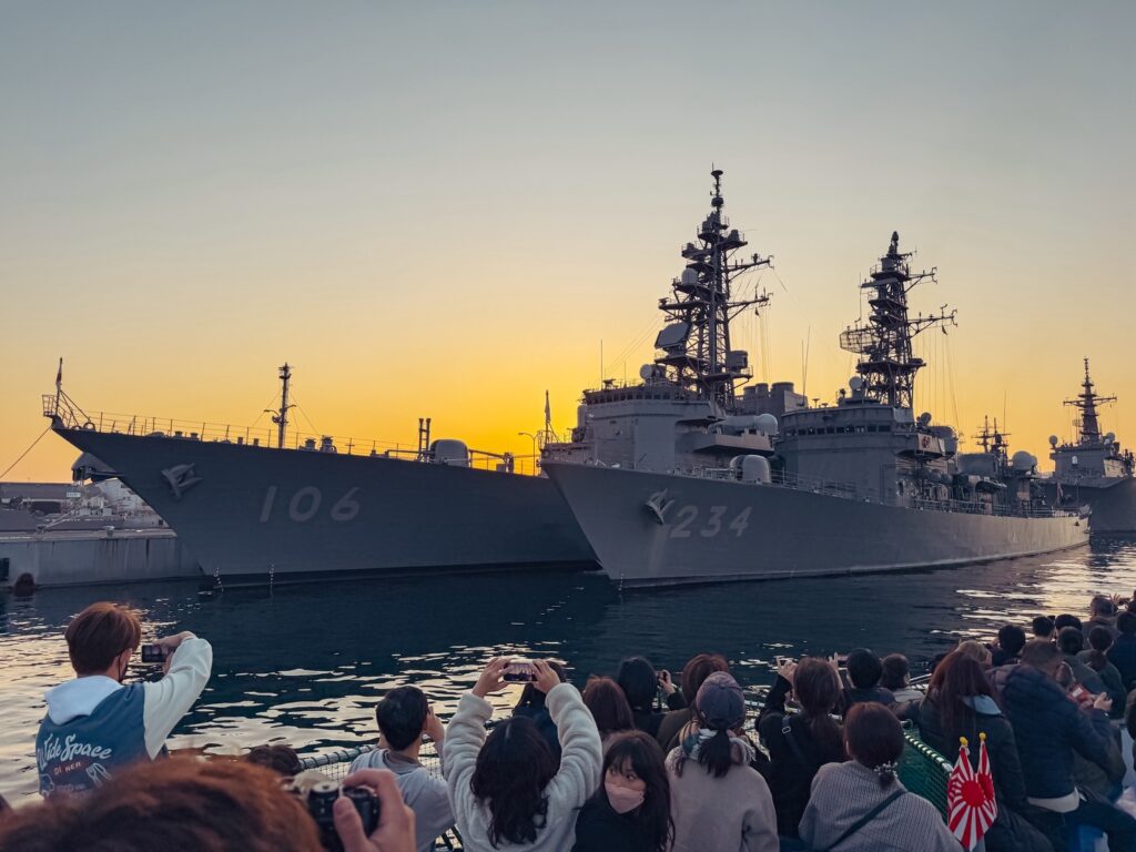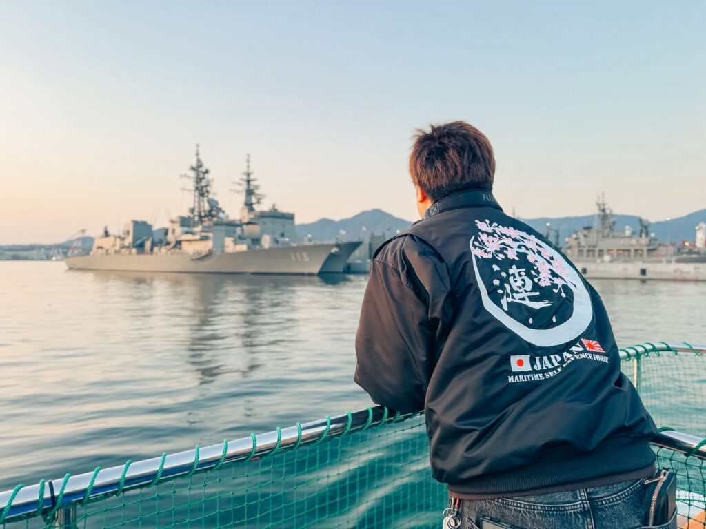 日没とともにラッパを吹き自衛艦旗を下ろす儀式も見学できちゃう「夕呉クルーズ」は当日予約なので合わせて予約しちゃいます。