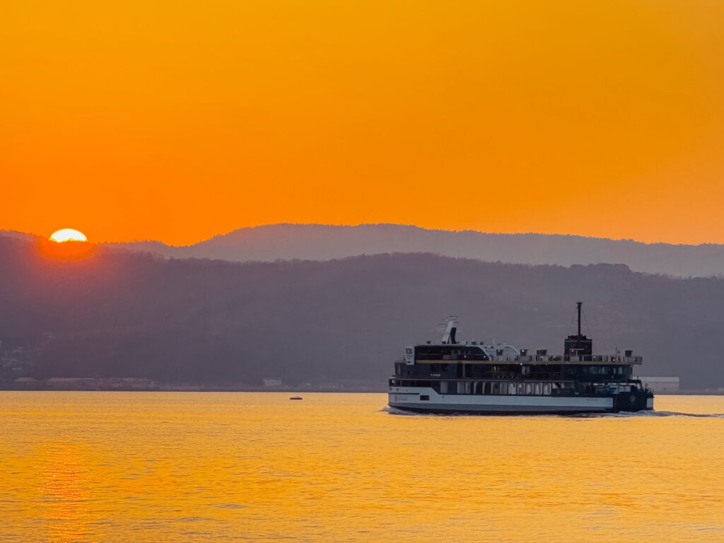 そして、昼の部と同じようにそれぞれの船の説明や雑学も披露いただき、さあ日没の時間が近づいてまいりました。