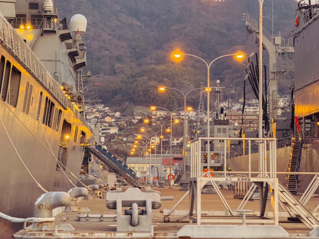 そんな呉港には、今でも海上自衛隊の基地があり、護衛艦や潜水艦など数多くの艦艇が停泊します。