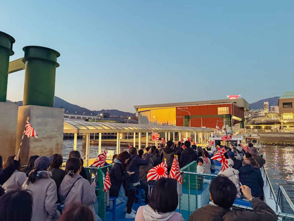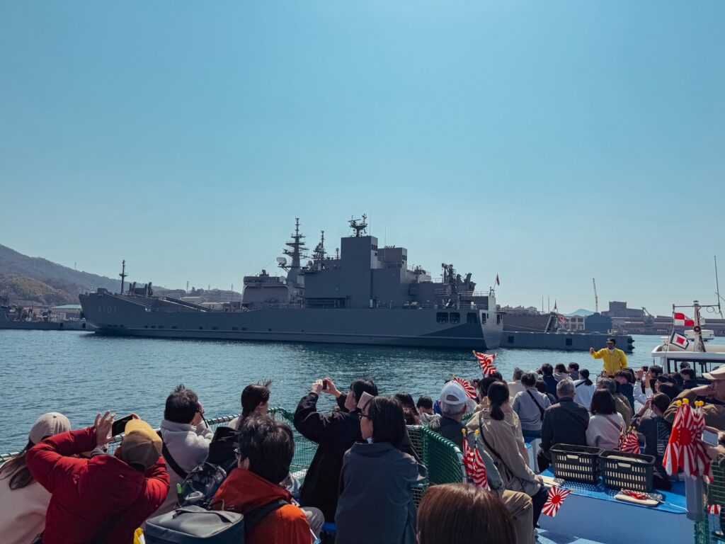 自衛艦旗を下ろす儀式を海から見学!夕呉クルーズも乗ってきた!