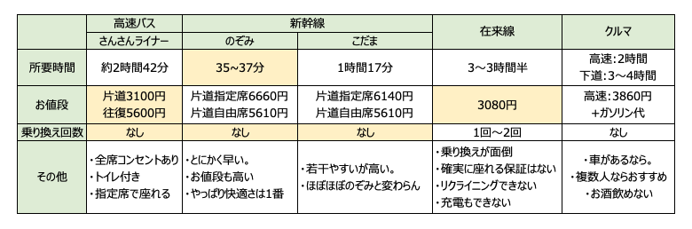 在来線でいくと乗り換え時間を含めておよそ3時間から3時間半