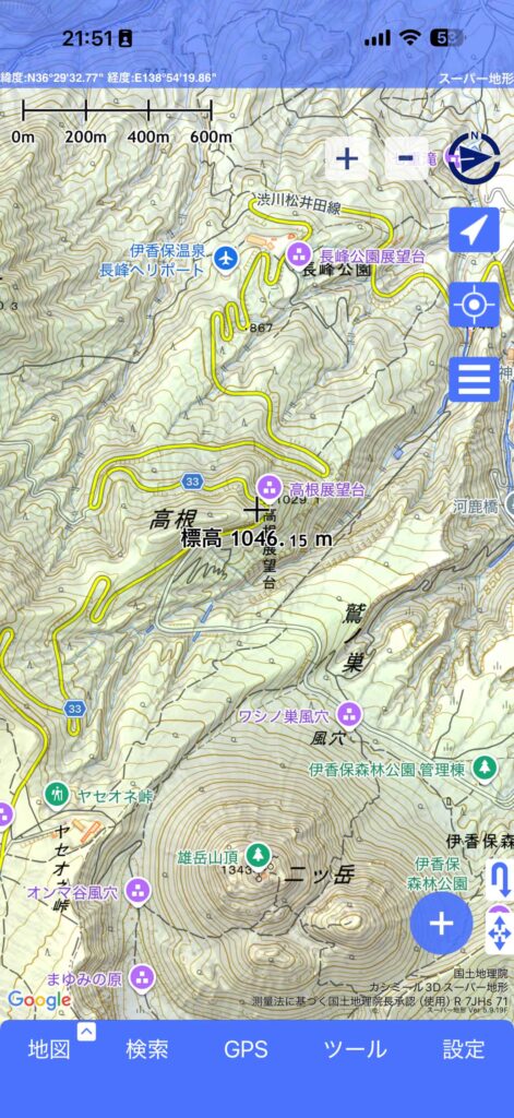 スーパー地形とは、登山やフィールドワークをする人にはお馴染みの「カシミール3D」というPCソフトのスマホ版です。