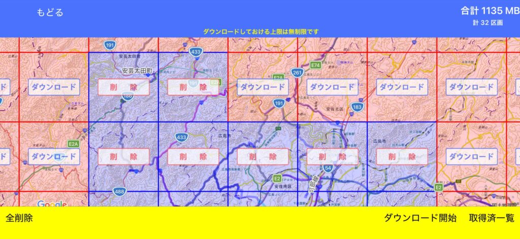 ダウンロードできる地図は、