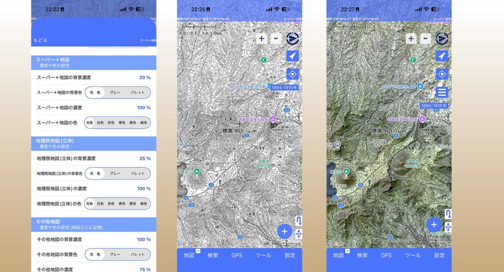 その今昔マップも、この「スーパー地形」の地図カスタムで使いこなすことができるのです。