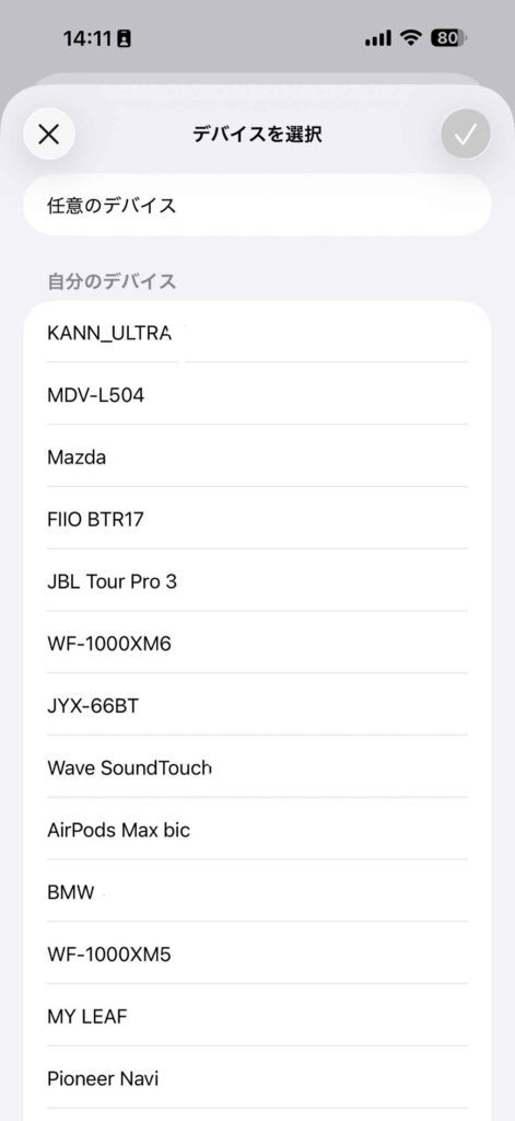 Bluetoothは、これまでに接続したことのあるリストから選ぶことができる