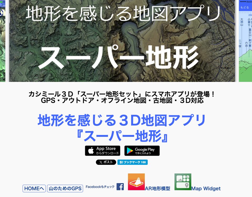 アプリ公式ストアで、「スーパー地形」と検索するか、以下のリンクから飛ぶのがおすすめです。